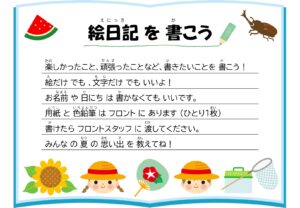 絵日記風の用紙を準備したので、絵や文章で夏の思い出を書いてください✍